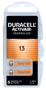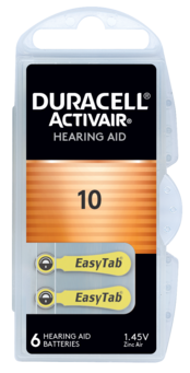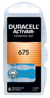 Die Duracell Activair Zink Luft Baureihe liefert die Energie für alle gängigen Hörgerätetypen, für High-Power sowie für digitale und analoge Modelle. Dank der farbcodierten Abkleber können Ihre Kunden die benötigte Batteriegröße leicht erkennen.
